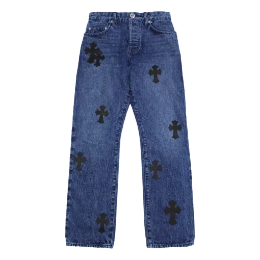 Chrome Hearts Cross Leather Patches Jeans
